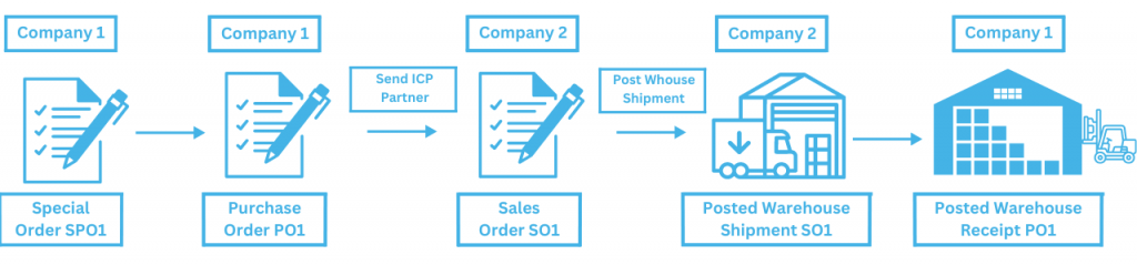 Warehouse Intercompany manages the process of documents exchange starting with a Sales Special Order and ending with an automatic creation and posting of Warehouse Receipts in the partner company.